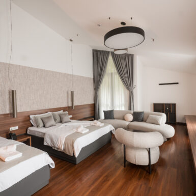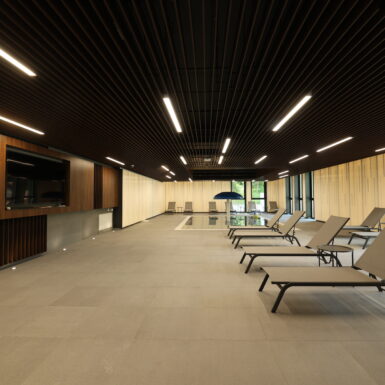 Enterijer novootvorenog kompleksa Terme Banja Luka u Srpskim Toplicama oblikovan je u savremenom duhu, uz dominantnu upotrebu prirodnih materijala kao što su drvo, kamen i ostali prirodni završni slojevi. Prostori su projektovani sa ciljem stvaranja mirnog, funkcionalnog i higijenski kontrolisanog ambijenta, prilagođenog namjeni banjsko-zdravstvenog i wellness objekta.