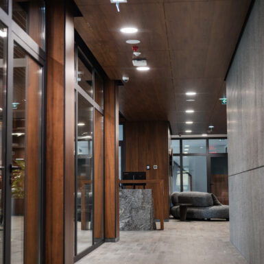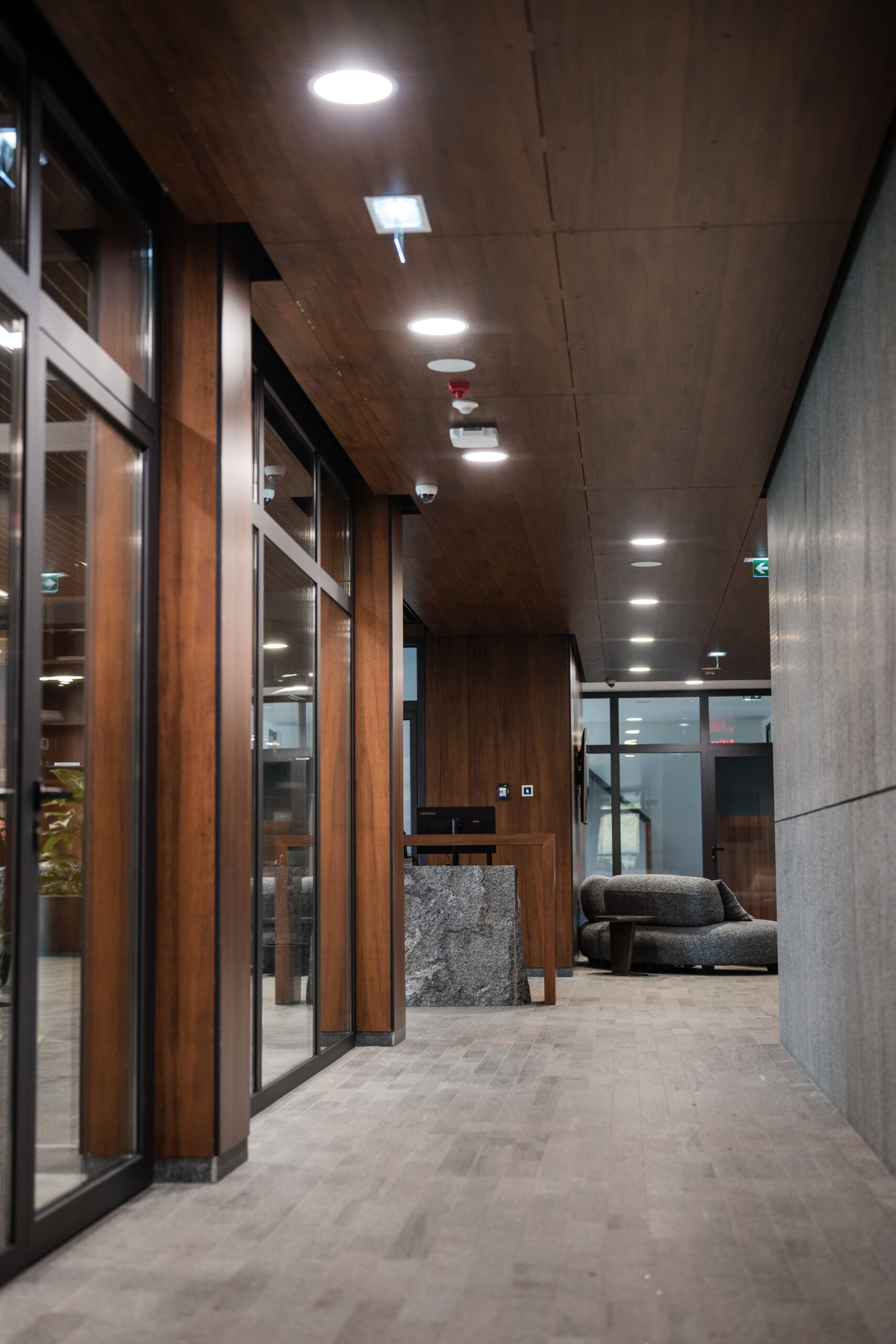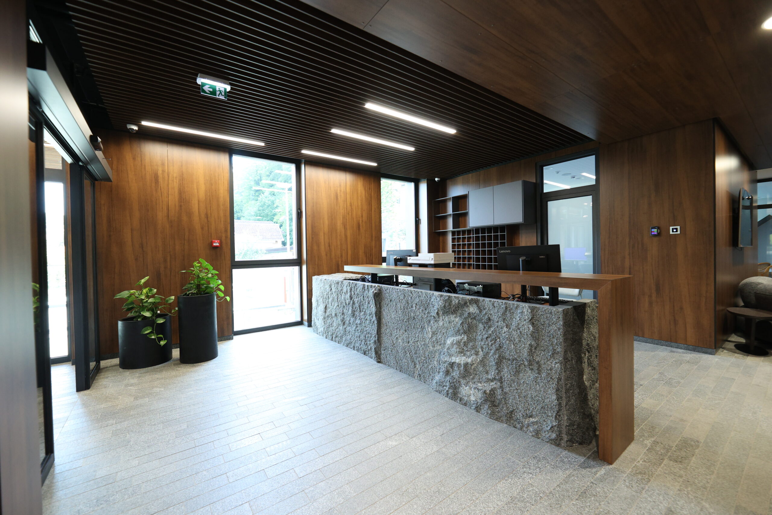 Cjelokupan enterijer izveden je sa naglaskom na trajnost materijala, lako održavanje i usklađenost sa funkcijom objekta, uz dosljednu primjenu prirodnih tekstura i neutralne koloristike.