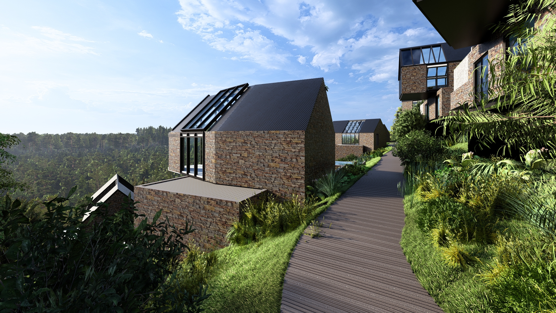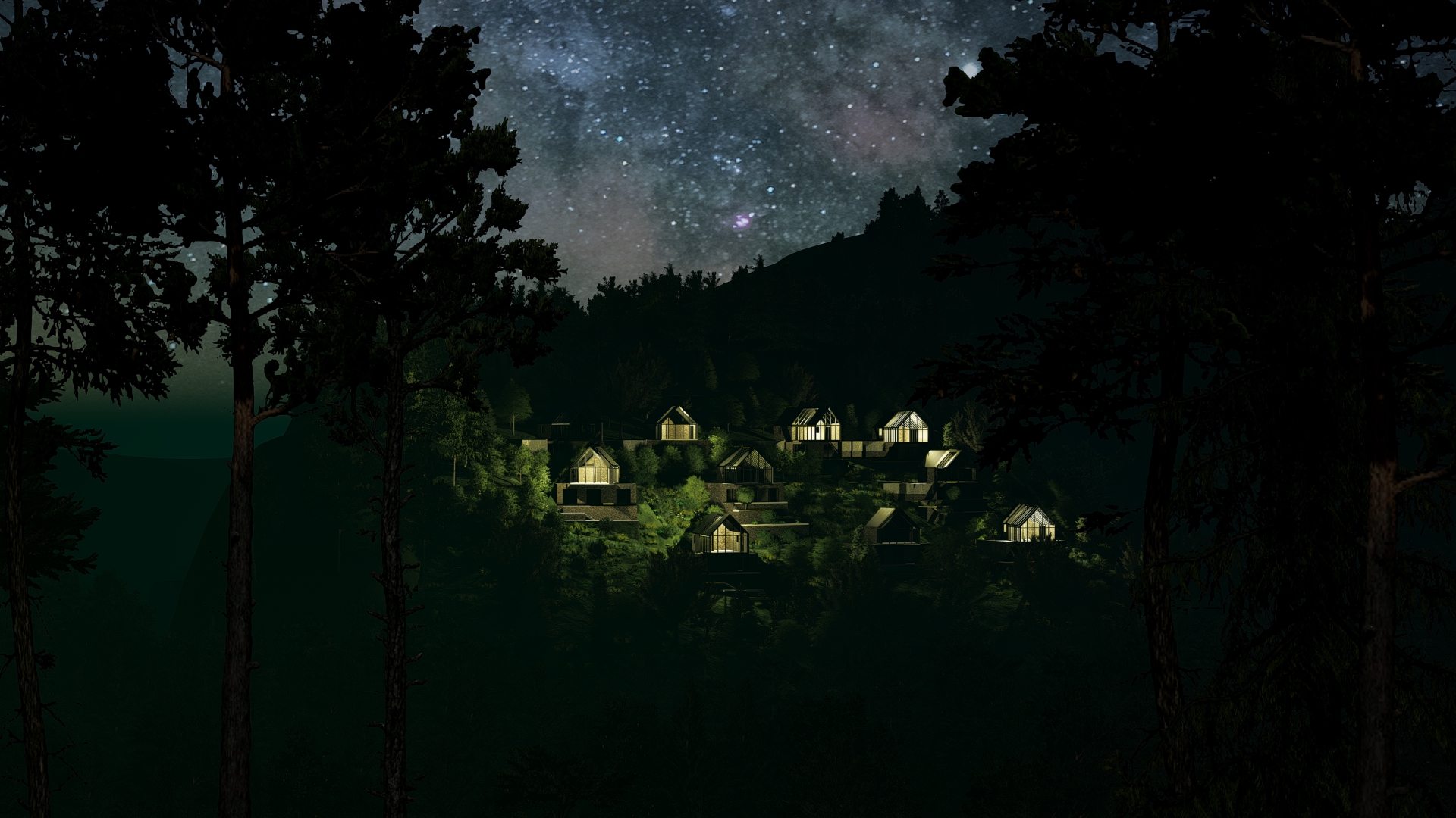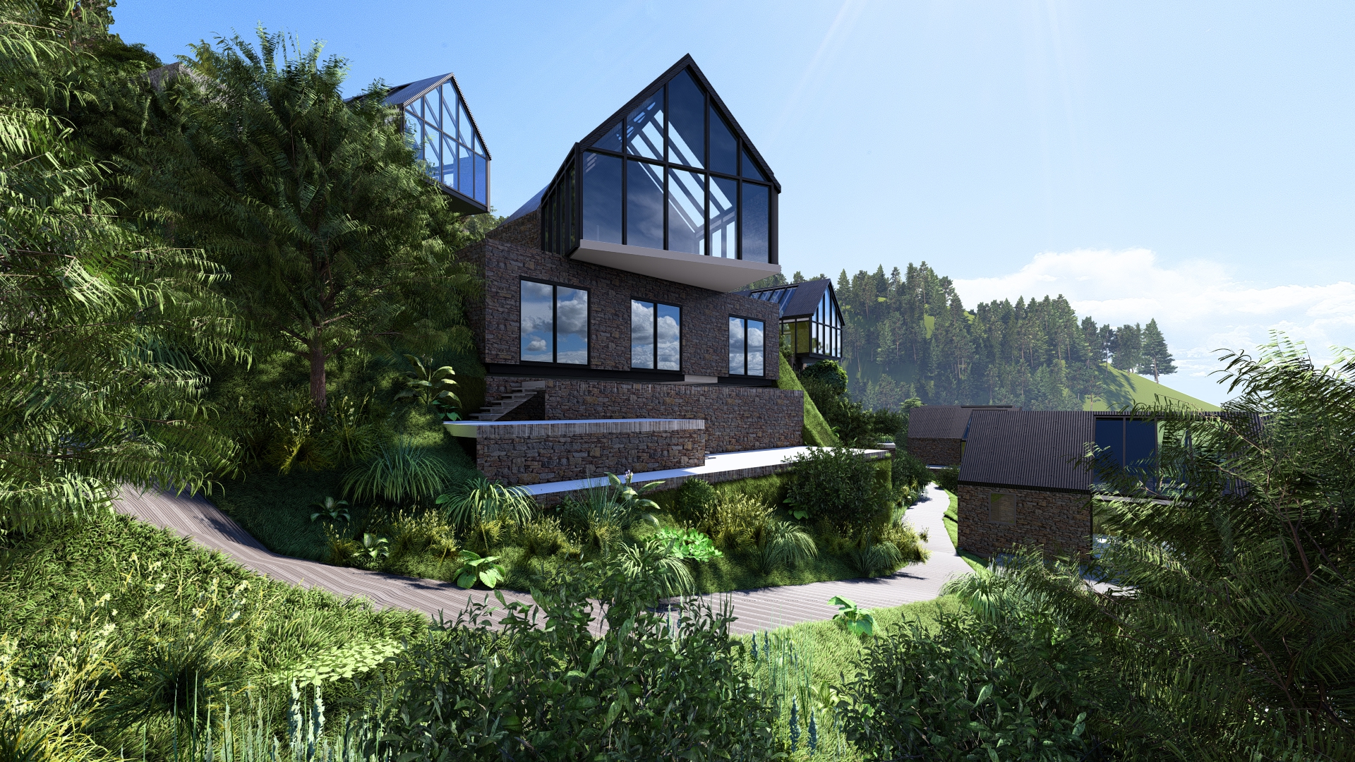 Moderni turizam, na domak grada a izdignut na padini da se grad sagledava iz svakog objekta. Sadržaj je potrebno približiti publici u podnožju, na privlačan način. Bio je to program za novi projekat investitora iz Austrije. Niz objekata samosvjesno proširuje paletu odgovora na složenu temu gradnje i na još složeniji teren. Promišljanje je išlo daleko u regijegdje planina obećava neposredni dožovljaj prirode i egzistencijalno lično iskustvo-iznad gornje granice šume, tamo gdje nesputani elementi otvaraju put potpunoj slobodi a uljeza tjeraju u sklonište. Takva su skloništa na teško pristupačnom terenu građena od jedinog dostupnog materijala-kamena. Pažljivo složen, sirovo ugrađen i bez ukrasa. To je bio podsticaj za arhitektu ali i investitora za ovo savremeno turističko naselje, što je ideja vodilja ovog projekta.