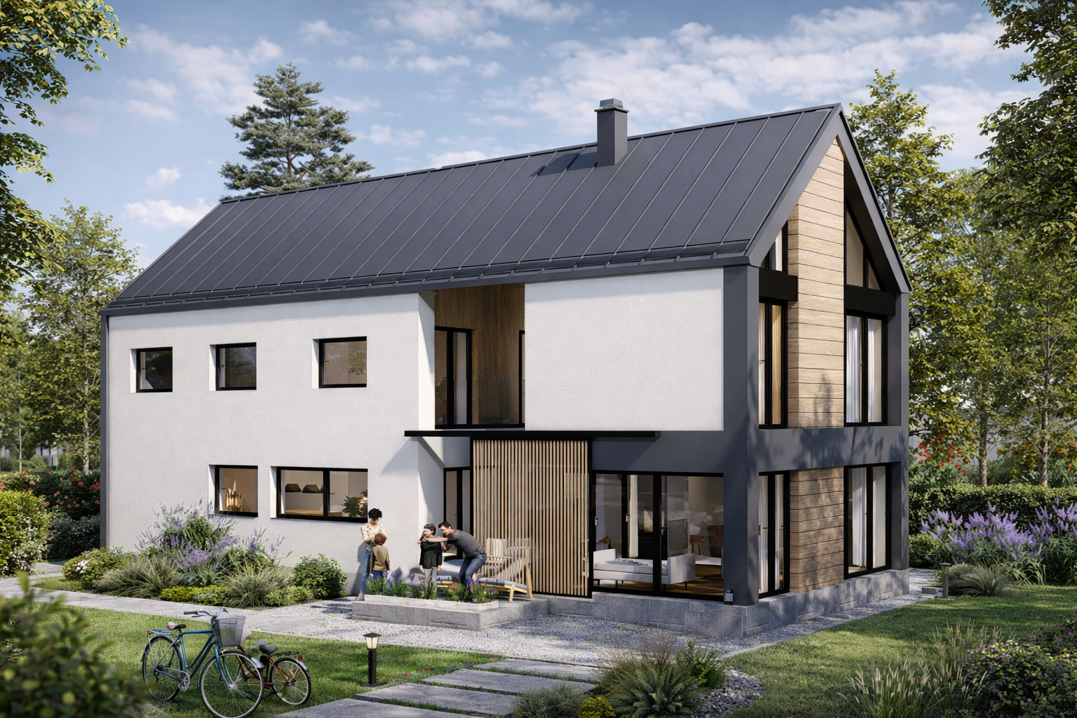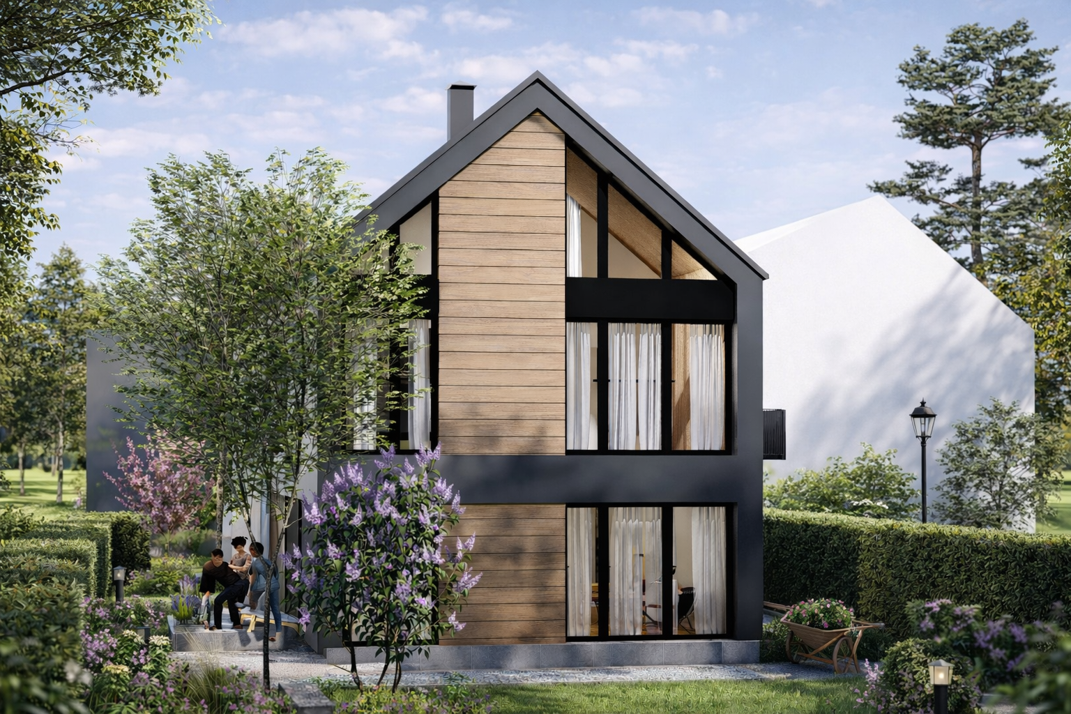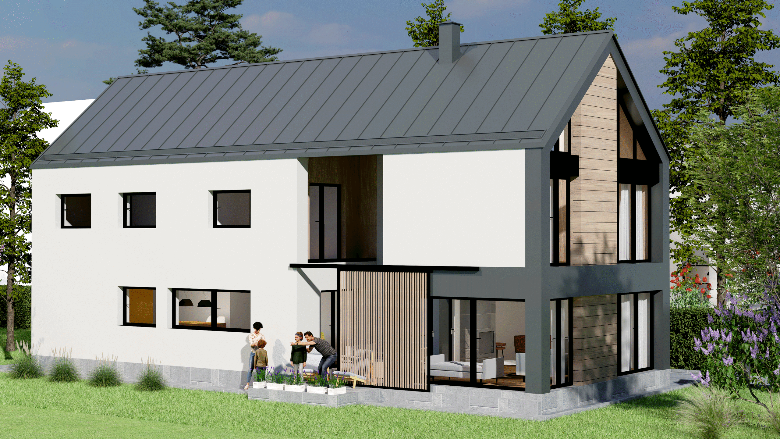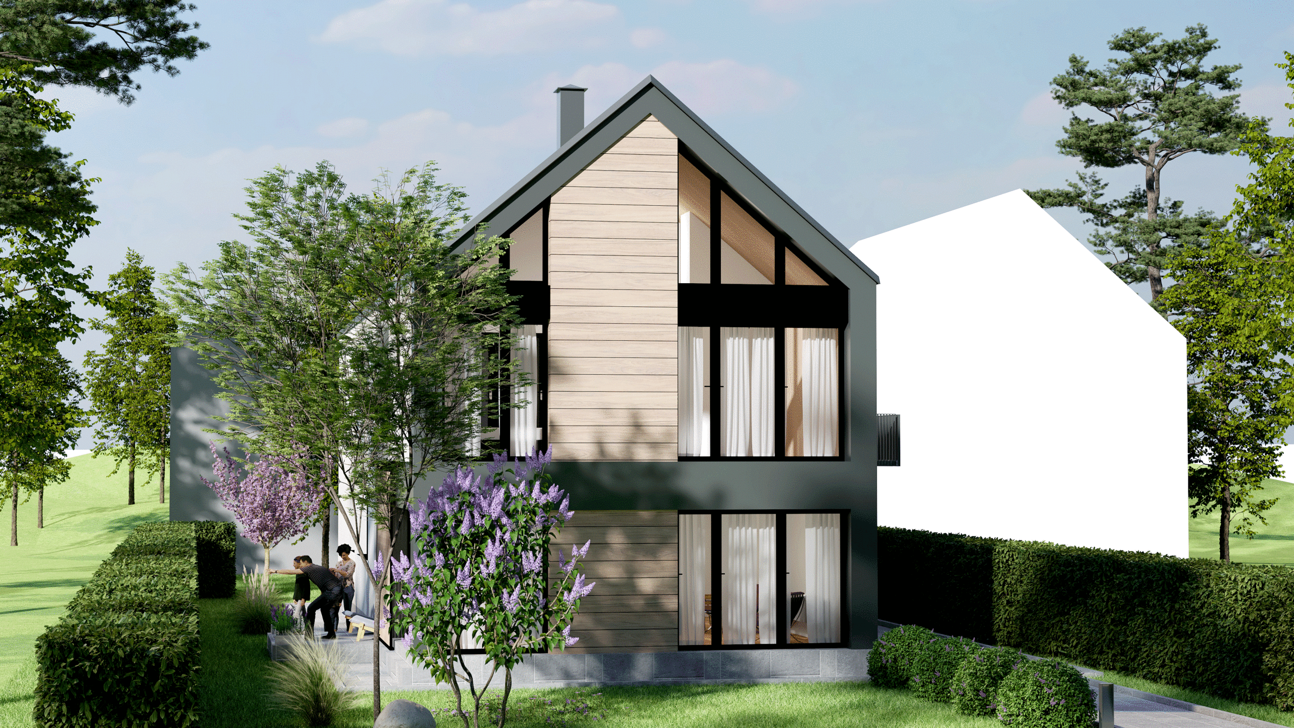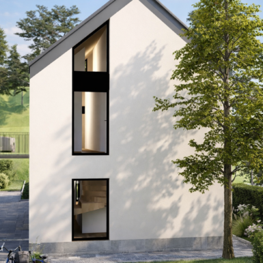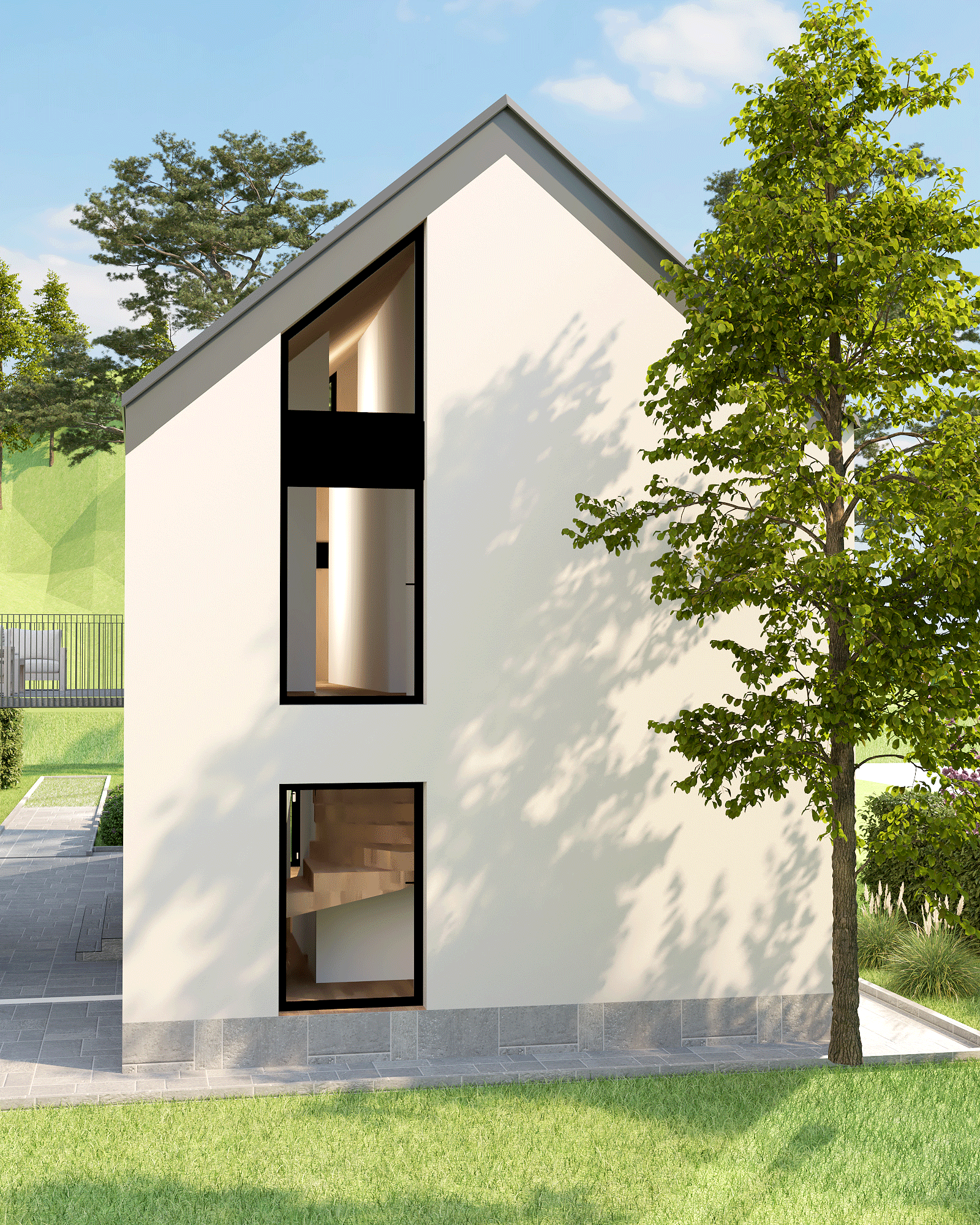 Novoprojektovani kubus je poput otkinutog bloka stijena koje su se zadržale tu ispod i ne remete ništa nego daju novi izgled i kvalitet prostoru.Vanjski i unutrašnji prostori kod ovog se objekata prirodno prožimaju bilo da zelenilo ulazi u unutrašnje dvorište I diže se uz vertikalu fasade,bilo da unutrašnji prostor se spaja sa okolinom kroz velike staklene površine.
