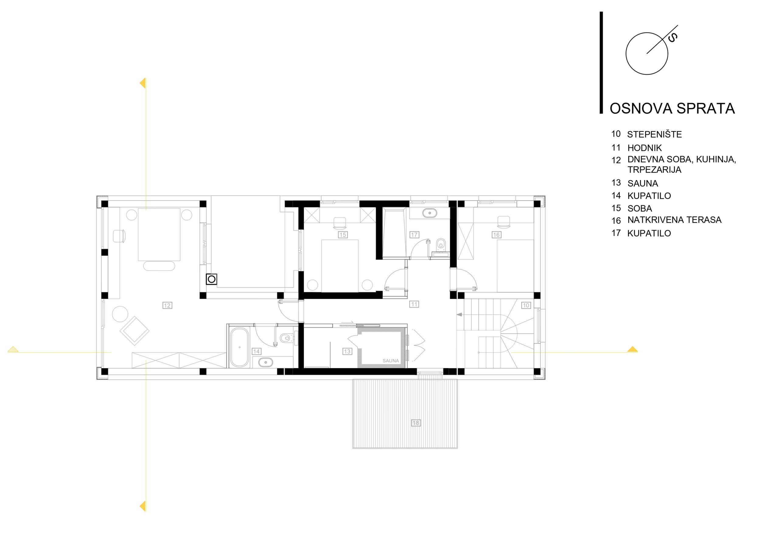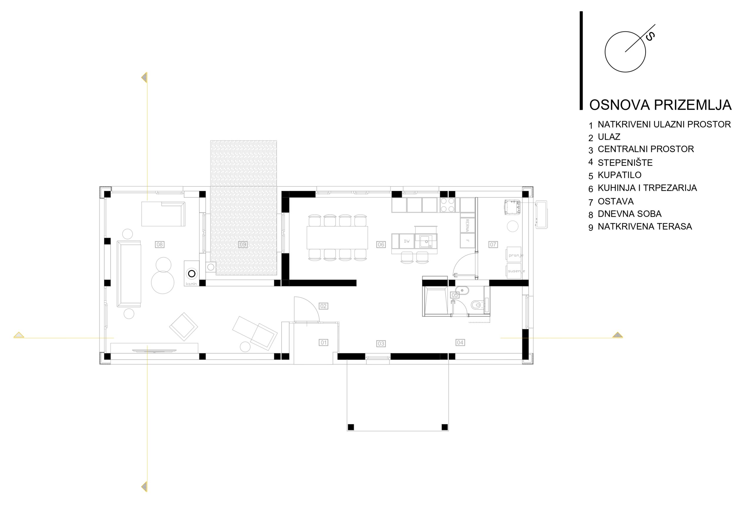 Otvorena stepenišna vertikala uvlači dnevno svjetlo na komunikaciju,kao I bočne vertikale prozora na krajevima hodnika-ovdje ne dolazi samo do uzbudljivog prožimanja okoline I građevine već se uočava I poseban kvalitet objekta a to je fluidni prijelaz između prostora koji istovremeno jasno naglašavaju podjelu različitih prostora na zone,te jasna orjentacija u unutrašnjosti,pojačana prostorijama koje odaju dojam prostranosti I otvorenosti,te centralnim potezom dvorišta na nivou prizemlja a glavne komunikacije između zona na nivou sprata.