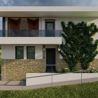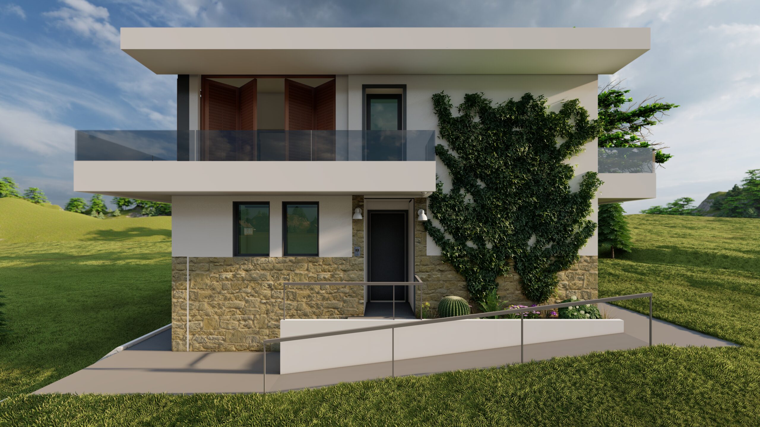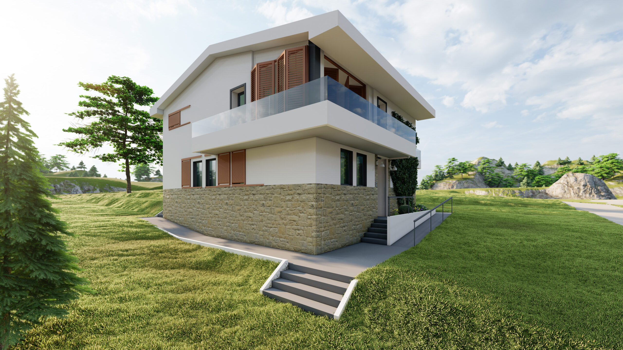 Sirovi prirodni kamen na fasadama, podzidima, terasama i željeni izgled postignut je sa pet vrsta kamena iz kamenoloma Krajine.