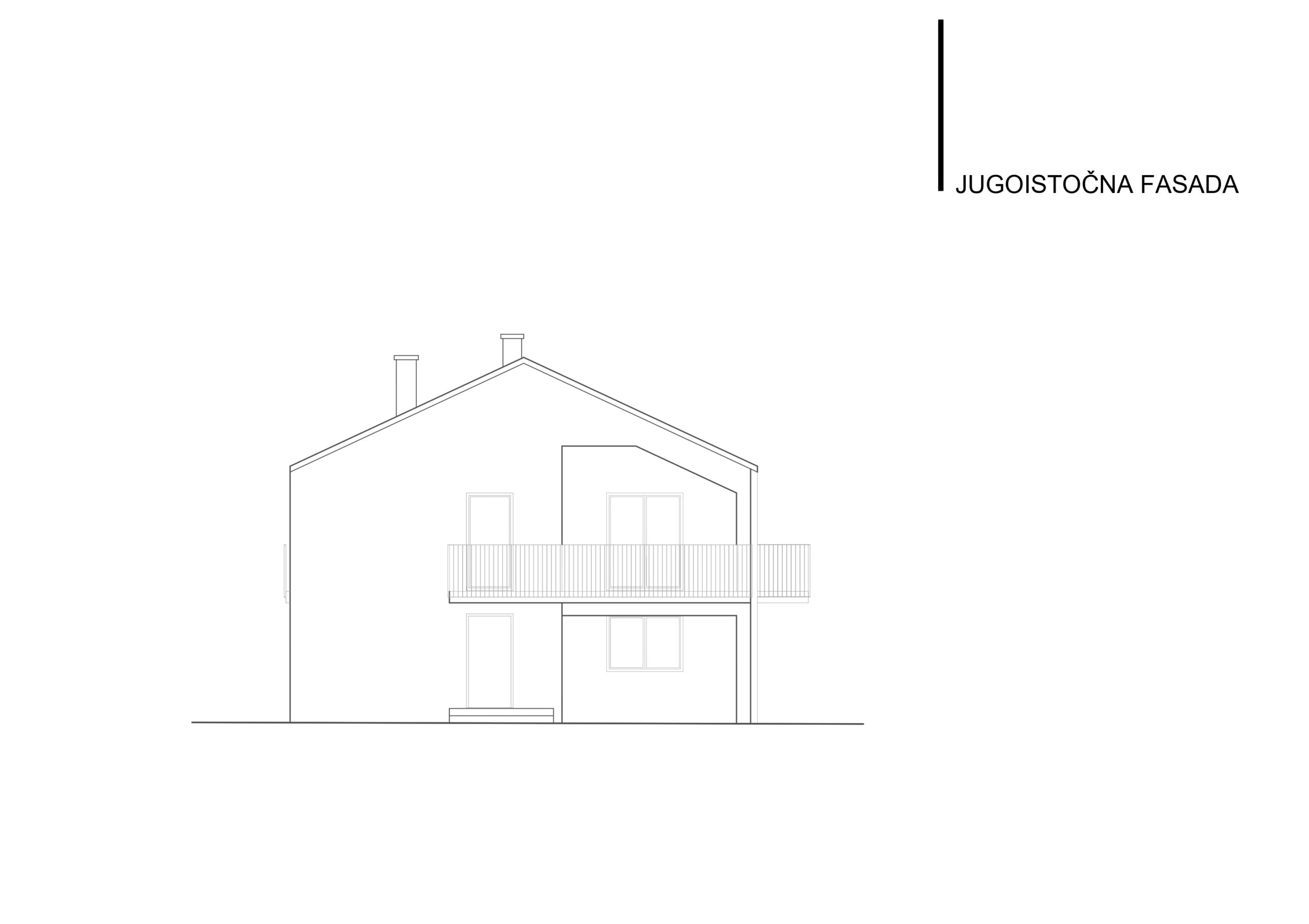 Postojeći objekat i emocionalna veza naručioca sa njim su diktirali oblik kuće i njenu orjentaciju. Na prizemlju su ulazi na sjevernoj i istočnoj strani sa dnevnim boravkom, trpezarijom, kuhinjom i pomoćnim prostorima na toj etaži a obe jedinice sobe za spavanje imaju na potkrovnoj etaži, gdje je veliki tlocrt omogućio dobro organizovanje prostora sa kupatilima i gardarobom.