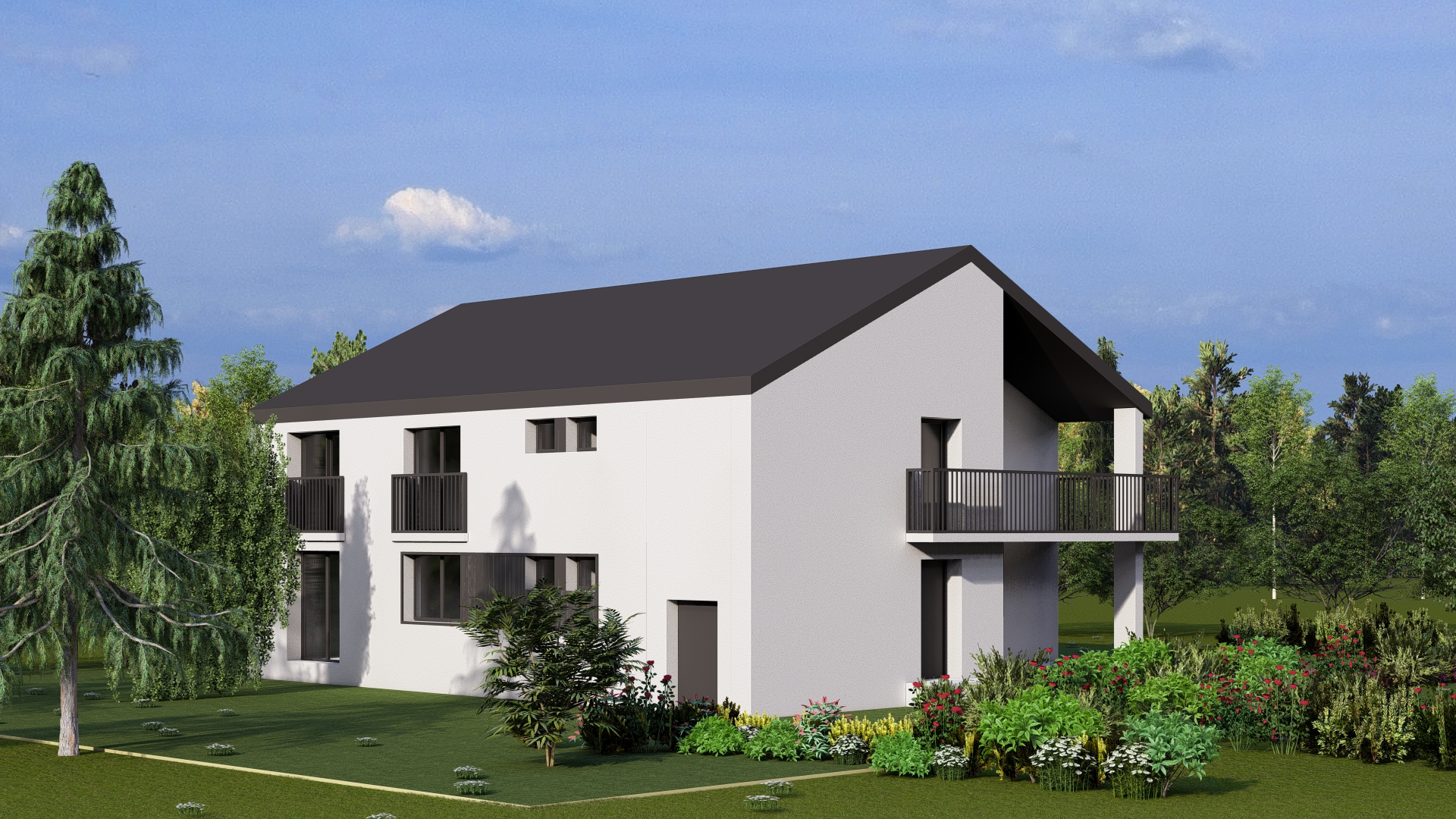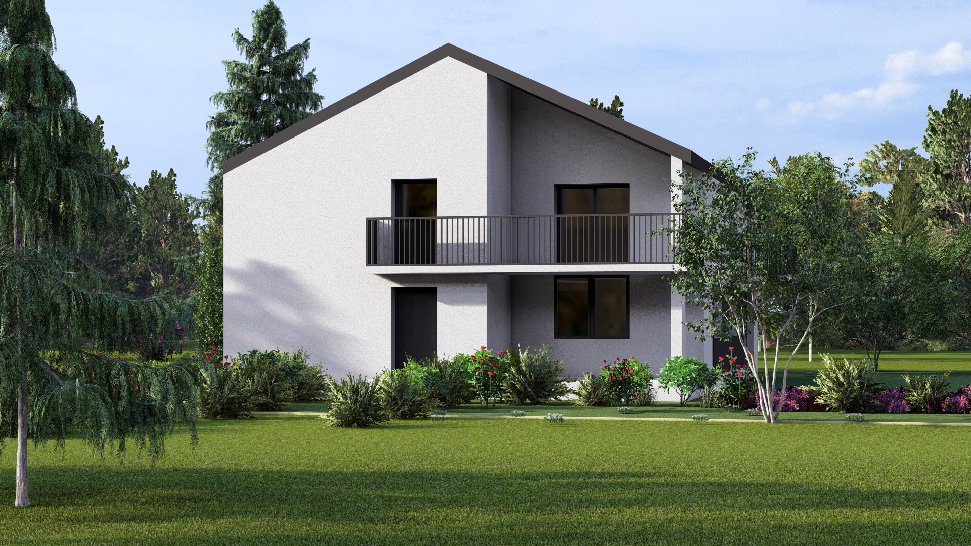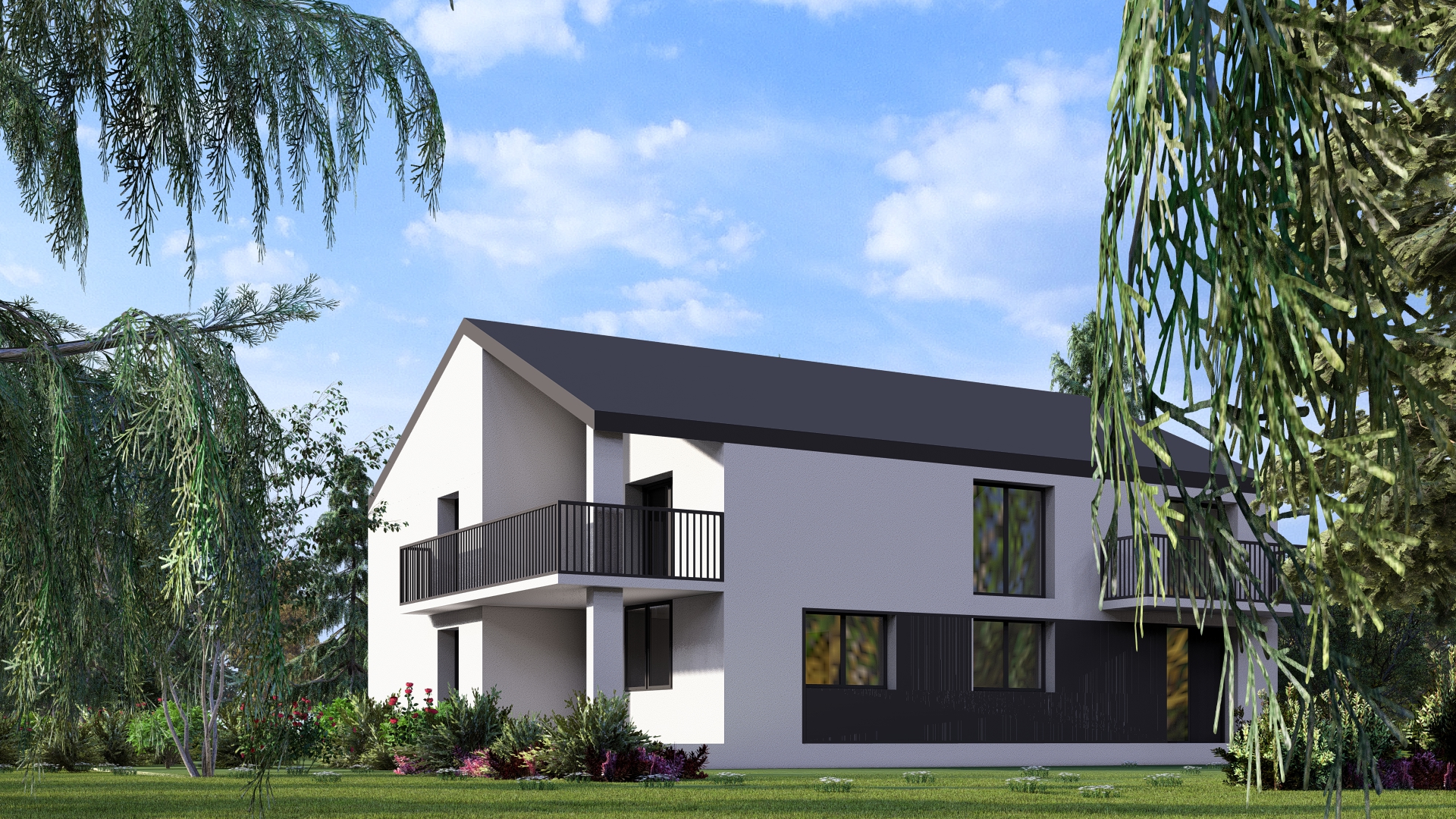 Otvaranjem prema pogledima stvoreni su prostori puni svjetla a dnevni boravci oba stana otvaraju se na terase koje su u kontaktu sa prostranim prostorom dvorišta sa voćnjakom.