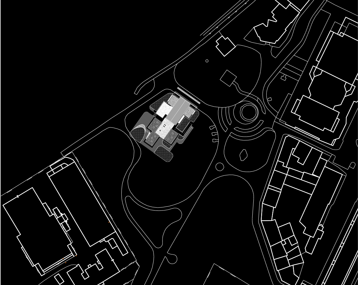 Tamne komore i prozirne staklene plohe najnoviji su dodaci staroj zgradi koja je nekad bila Sokolski dom, reprezentativan objekat namijenjen razvoju omladine Kraljevine SHS u Gradišci, a koji je rekonstrukcijom namijenjen za gradsku biblioteku. Od 1938. godine ova građevina stoji na najznačajnijem javnom prostoru u gradu, u jezgru istoriskog dijela ovog starog i ne dovoljno istraženog grada, uz rijeku Savu u gradskom parku. Simetričan, generički raspored zgrade rezultirao je dosljednom prostornom strukturom koja je tokom vremena omogućila kontinuirane cikluse promjena koje su se događale u funkciji objekta. Tlocrt je u ovom slučaju jednostavna pravougaona dvorana sa lijevo i desno simetrično postavljenim dodacima orijentisana u pravcu sjever-jug. Pokazalo se da se radi o izuzetno fleksibilnom tlocrtu, sposobnom da primi najrazličitije arhitektonske programe, pa i ovaj, u ovom vremenu, joj namijenjen, biblioteku. Čak je uzmogla prihvatiti promjene u urbanističkom oblikovanju, što se dogodilo dogradnjom crnih kutija na njenim bočnim dijelovima u samom tlocrtu, kao i na južnoj strani objekta koje svojom muzejskom namjenom upotpunjuju funkciju postojećeg objekta.