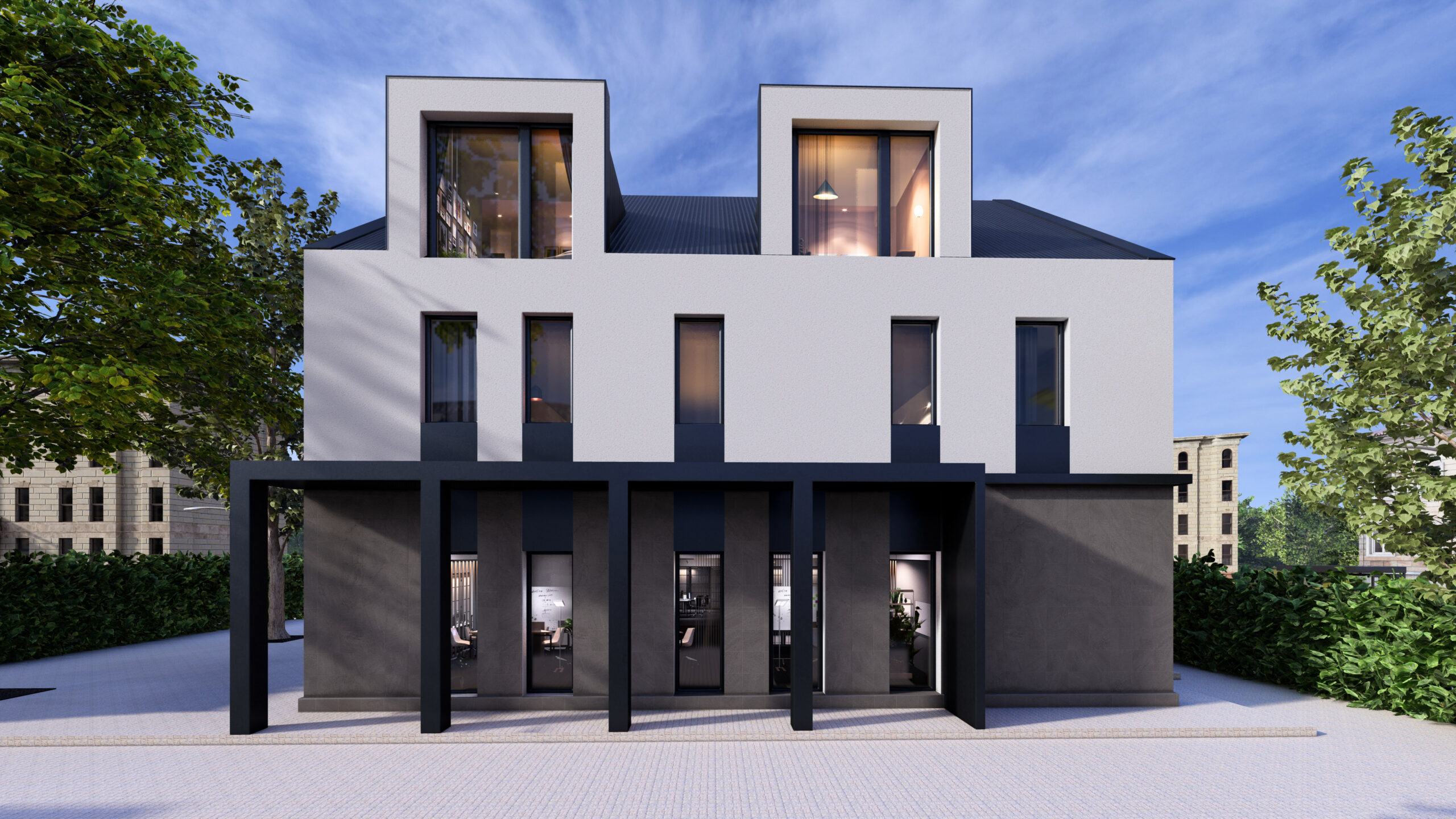 Najvažniji element i inspiracija za ovaj projekat je sama lokacija u centralnoj gradskoj zoni sa  izuzetno kvalitetnim postojećim visokim zelenilom, koje je gusto raspoređeno na južnoj strani parcele i u koje se skladno uklapa postojeći objekat iz dvadesetih godina dvadesetog vijeka kao ,,srednji“ duž Ulice D. Mitrova a dva objekta smo već radili rekonstrukciju.